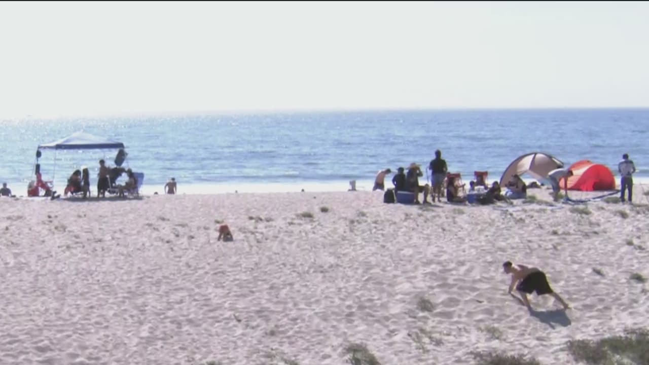 Decenas de familias aprovecharon el fin de semana largo para pasar tiempo al aire libre en la playa, en donde se registraron altas temperaturas por encima de los 100 grados Fahrenheit.