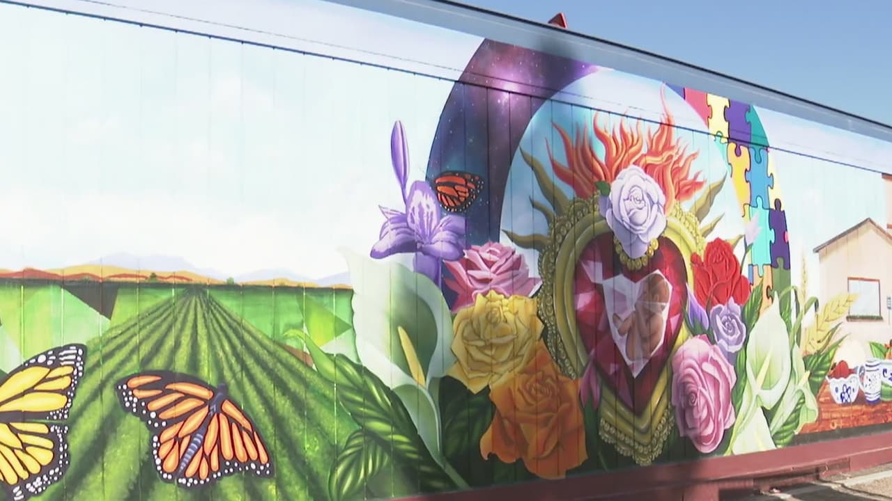 Este mural pretende reflejar los esfuerzos y trabajo de las mujeres de la comunidad y fue pintado en una escuela de la localidad.
