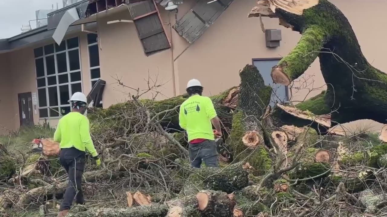 Además, se reportó la caída de un árbol sobre un edificio de la escuela primaria Steele Lane, lo que obligó a cerrar la zona para labores de limpieza. Afortunadamente, no se reportaron heridos.