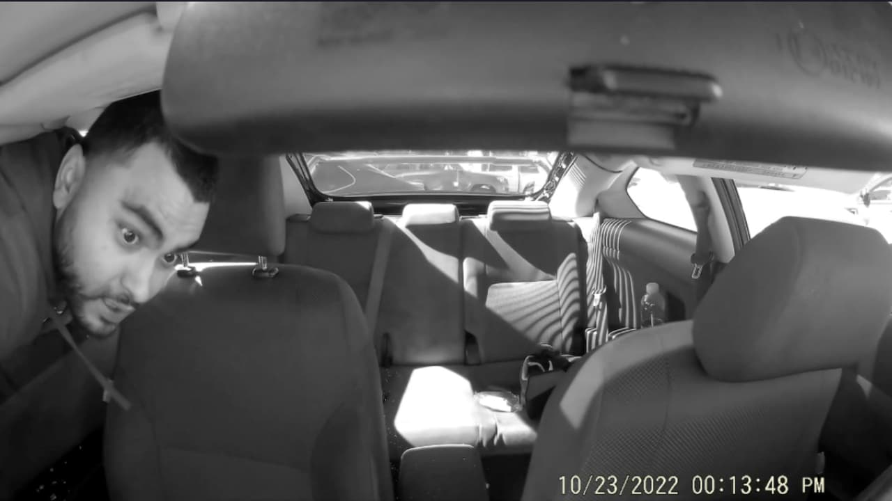 Rompen ventanilla al auto de un latino para robarle el estéreo: video capta el rostro del presunto ladrón