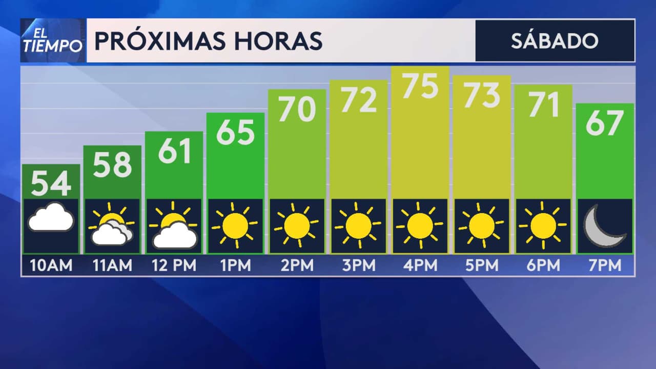 Sábado bastante soleado con temperaturas máximas alrededor de los 75º F
