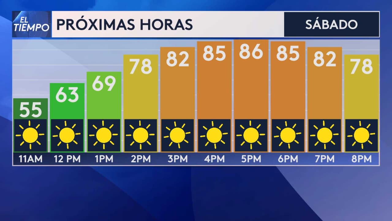 Sábado muy caluroso con máximas arriba de los 85º F; para el domingo regresa la probabilidad de lluvia.