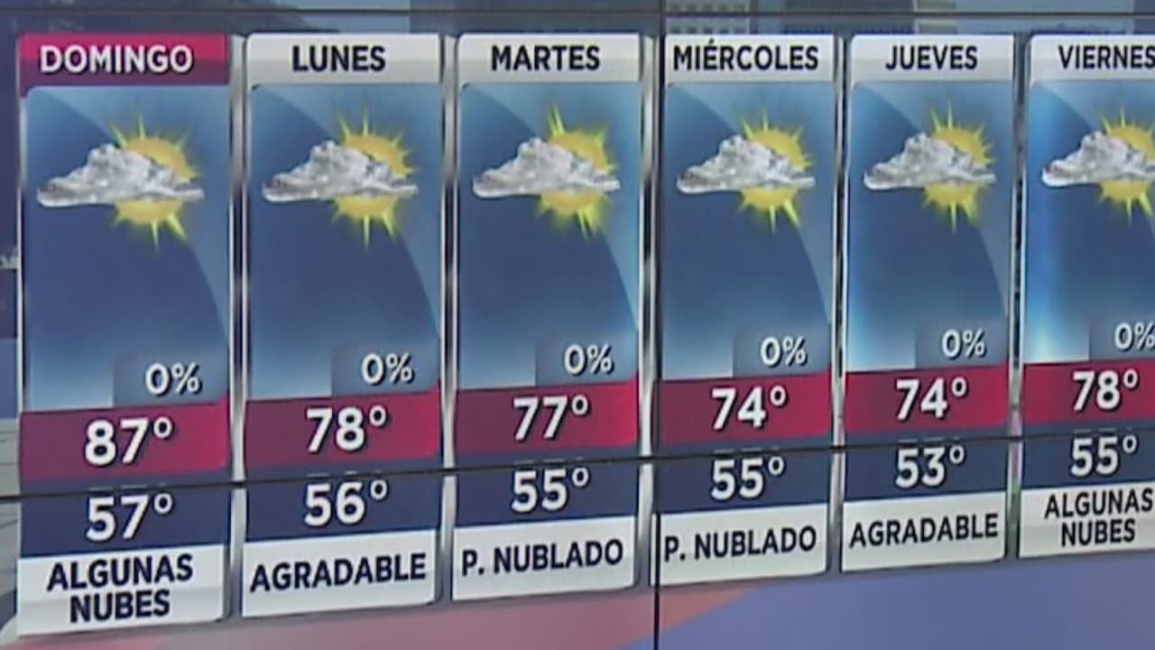 Las temperaturas máximas están en los niveles de los altos 80 grados, con condiciones nubladas.