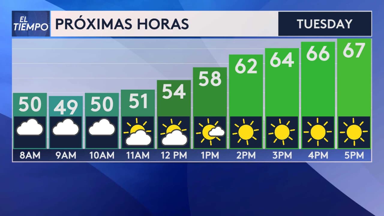 Las máximas alcanzarán los 67º F en la región con cielos despejados por la tarde.