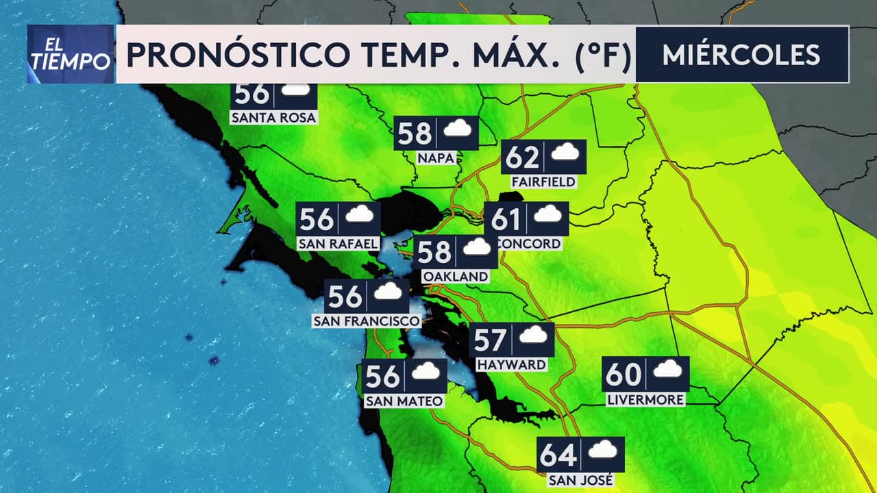 Se espera un miércoles nublado con lluvias ligeras por la tarde para el Área de la Bahía
