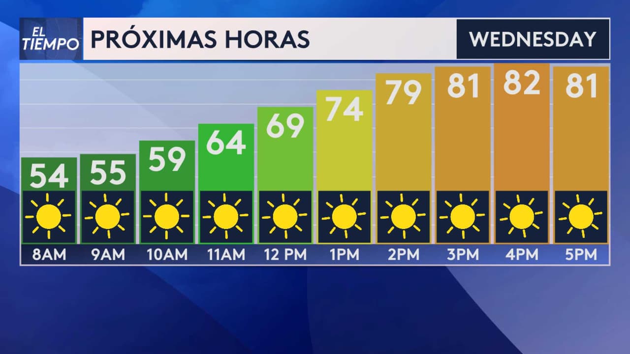Se espera un miércoles soleado con temperaturas que se acercarán a los 85º F