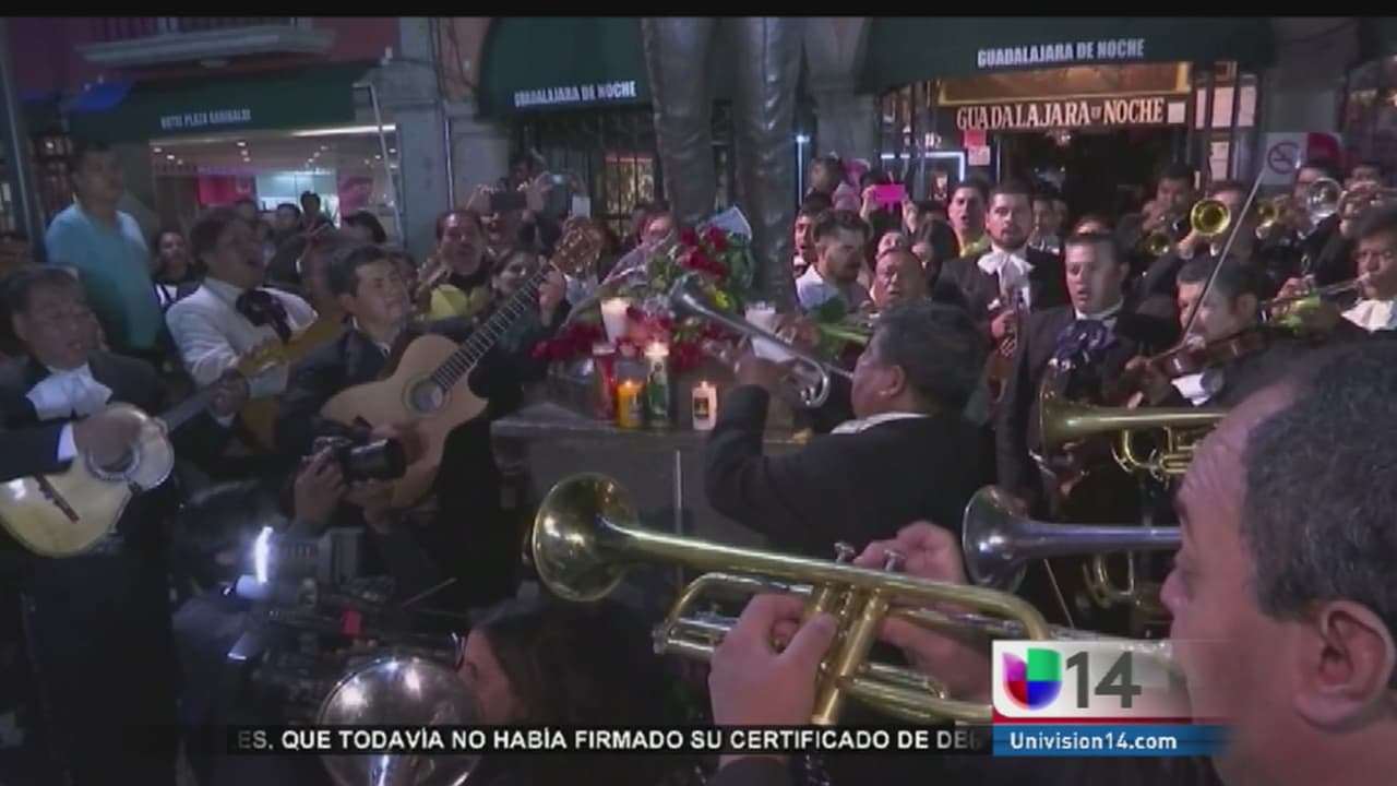 Decenas de mariachis y cientos de personas se dieron cita en la plaza Garibaldi, en la Ciudad de México, para interpretar los éxitos del 'Divo de Juárez'.