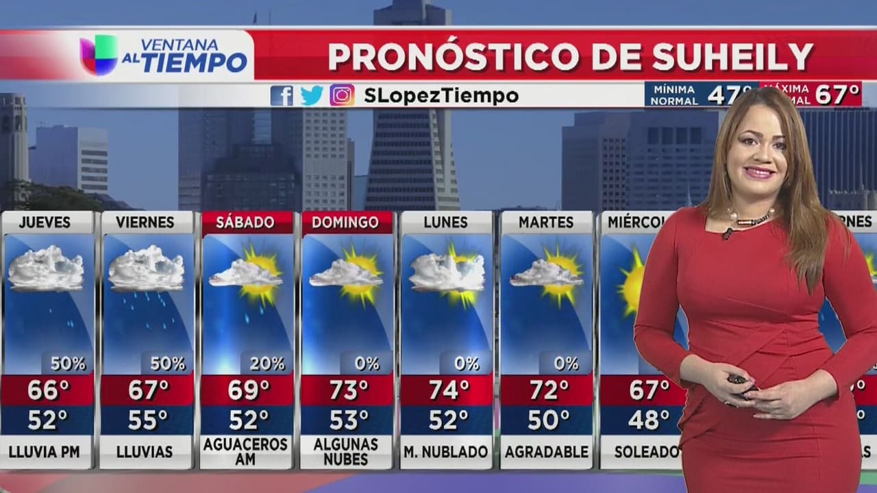 Para este jueves se prevén lluvias, con probabilidades del 50% por la tarde y temperaturas máximas de 66 grados.