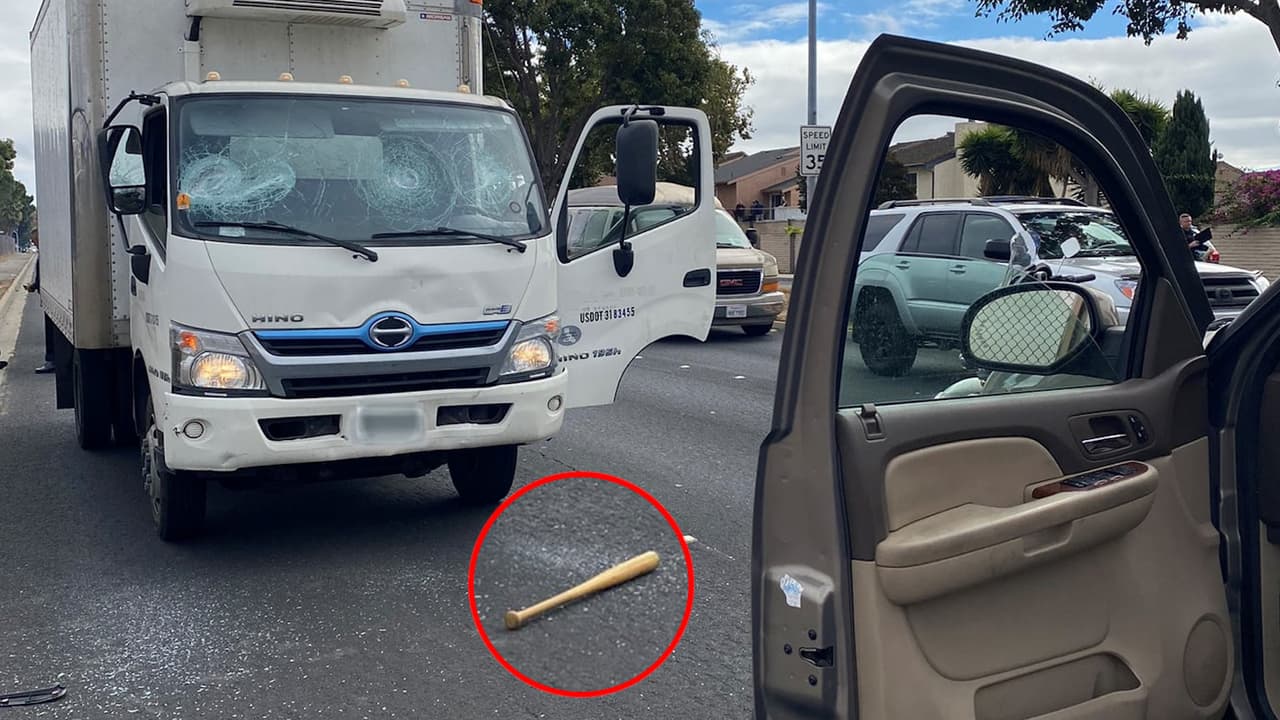 El sujeto que llevaba el bate, golpeó el parabrisas del camión y el hombre dentro del vehículo resultó con lesiones en la cabeza.