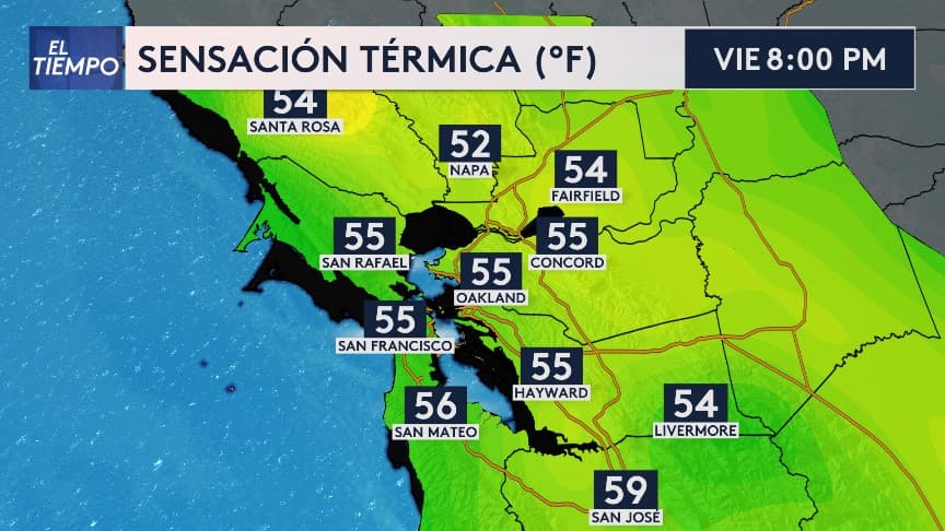 La noche será fría: por debajo de los 55 grados en San Francisco, y 59 en San José.