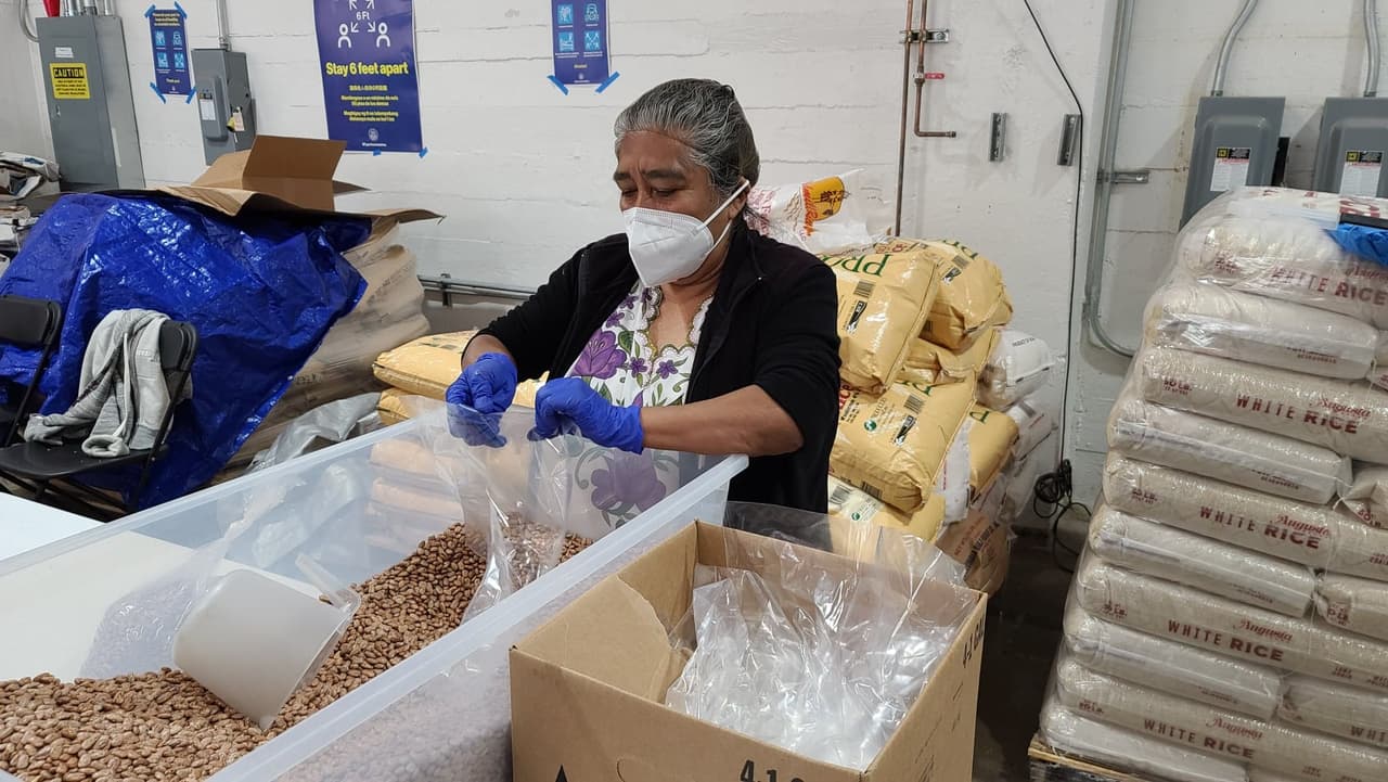 Cientos de familias afectadas por la pandemia acuden a Mission Food Hub semanalmente para recibir insumos básicos.