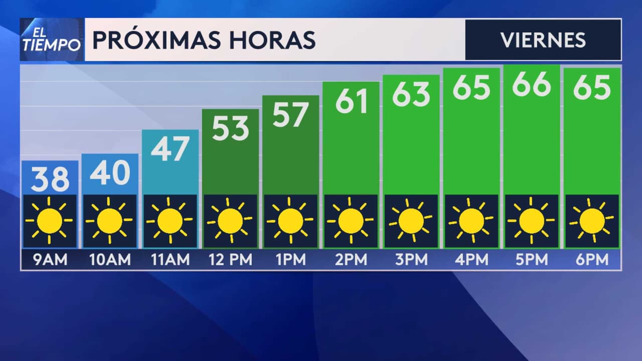 Prepárate para un viernes bastante soleado, aunque las condiciones frías con temperaturas de hasta 34 F se mantendrán por las noches, principalmente en el norte de la región.