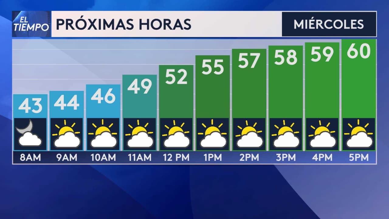Prepárate para una mañana bastante fría donde el termómetro se ubicará alrededor de los 45 F. Para la tarde las temperaturas se mantendrán frescas y el jueves regresan las posibilidades de lluvia a la región.