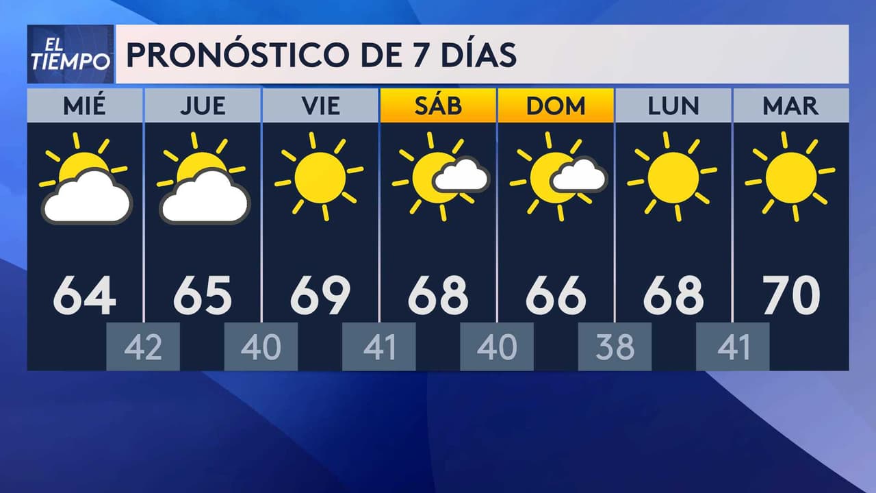 Se espera que para este miércoles las temperaturas máximas estén en el rango de los 60 grados, con mínimas frescas, en el rango de los 40 grados.