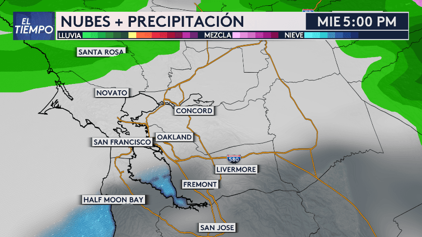 Aunque se pronostica poca lluvia al norte de la Bahía, específicamente en ciudades como Santa Rosa y Napa alrededor de las 5 pm, se esperan condiciones ventosas y nubladas para esta tarde.