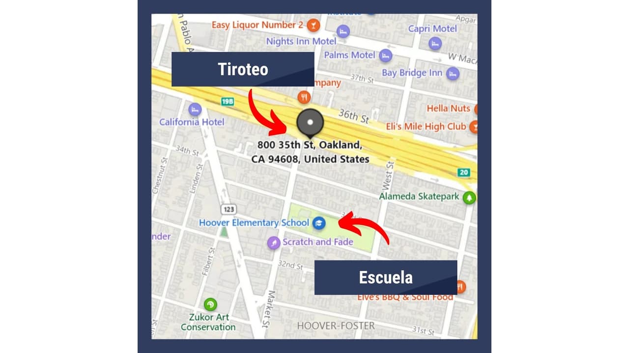 El Departamento de Policía de Oakland investiga un tiroteo registrado este miércoles 25 de mayo en la cuadra 800 de la calle 35, que está a dos cuadras de la escuela primaria Hoover.
