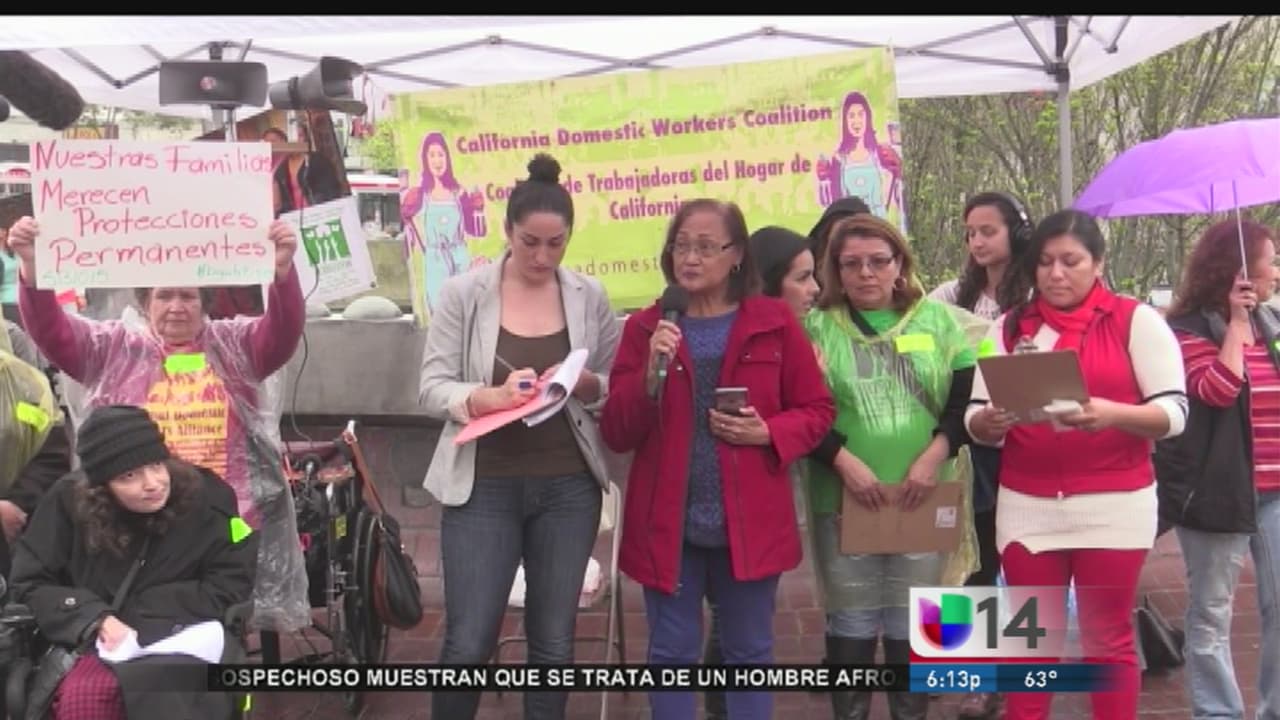 Más de cien mujeres se reunieron en apoyo a la ley que protege a trabajadores domésticas con el pago de horas extras.