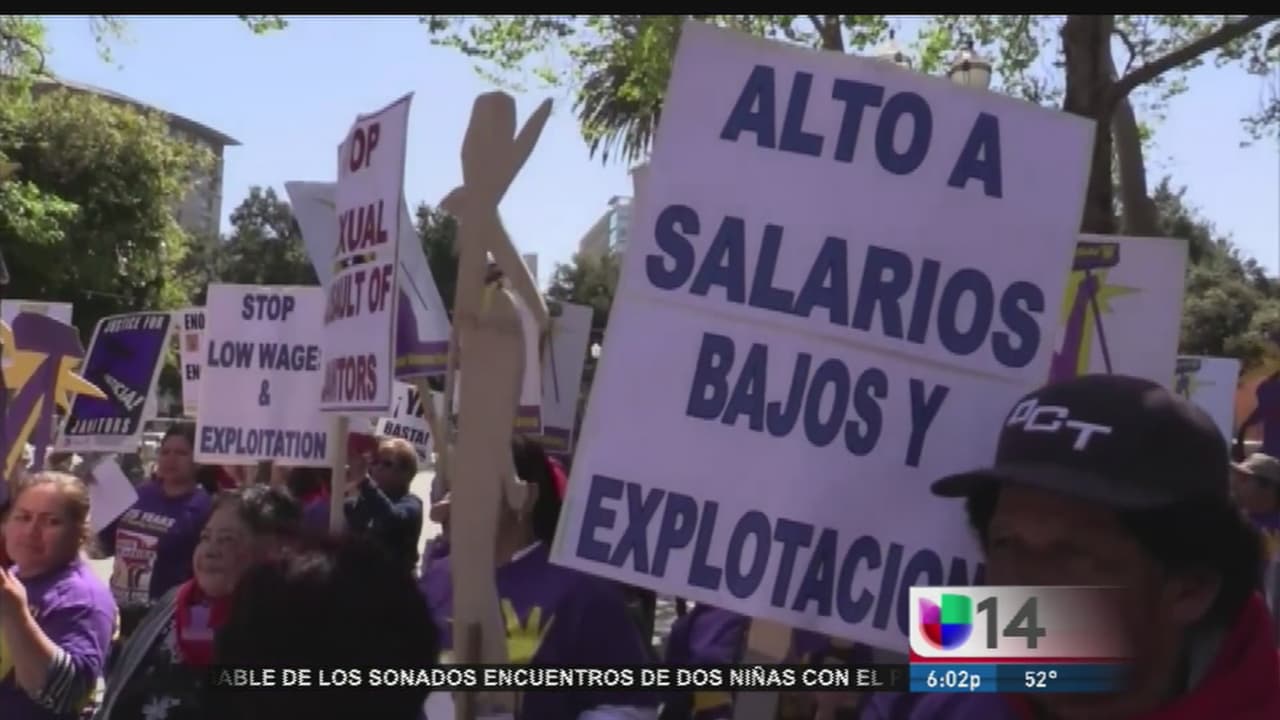 En el centro de la ciudad de San José miles de trabajadores, en su mayoría inmigrantes, se manifestaron por el aumento al salario mínimo.
