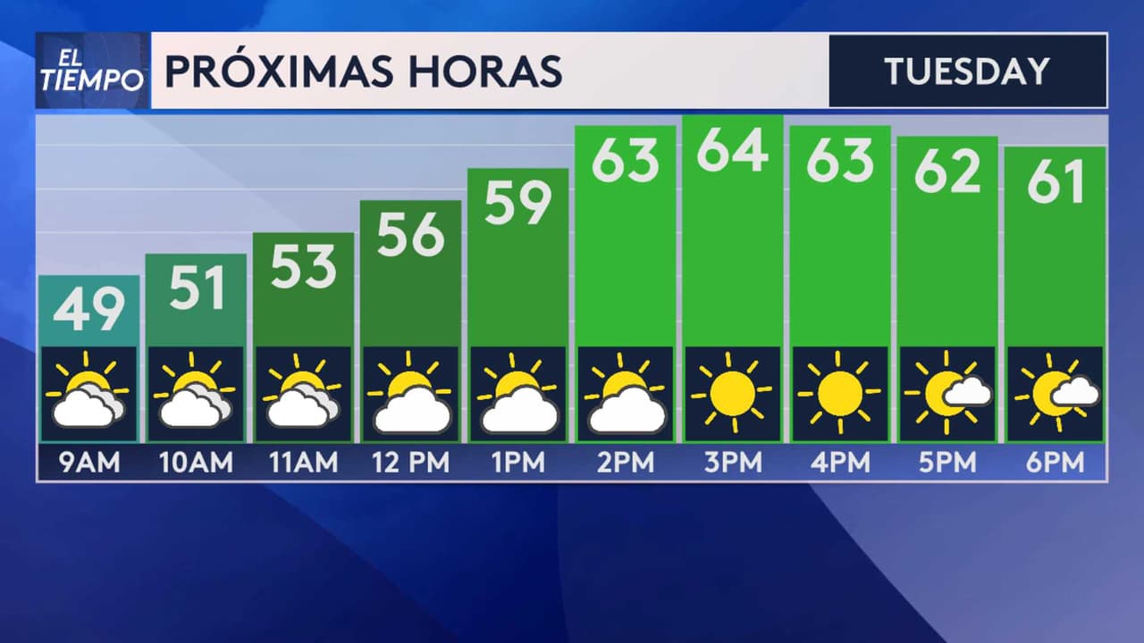 Se espera un martes parcialmente nublado con temperaturas máximas de 63º F para el Área de la Bahía.