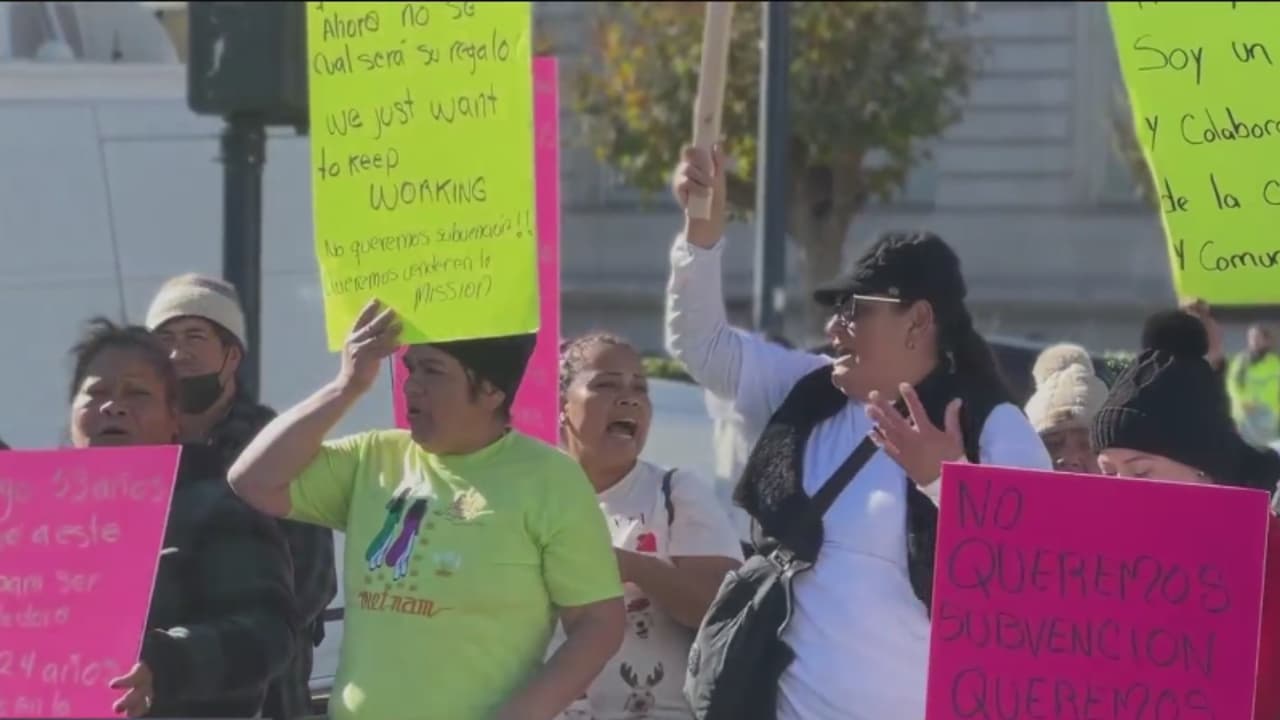 Vendedores ambulantes de La Misión, en San Francisco, marchan a la Alcaldía para que los dejen regresar a las calles