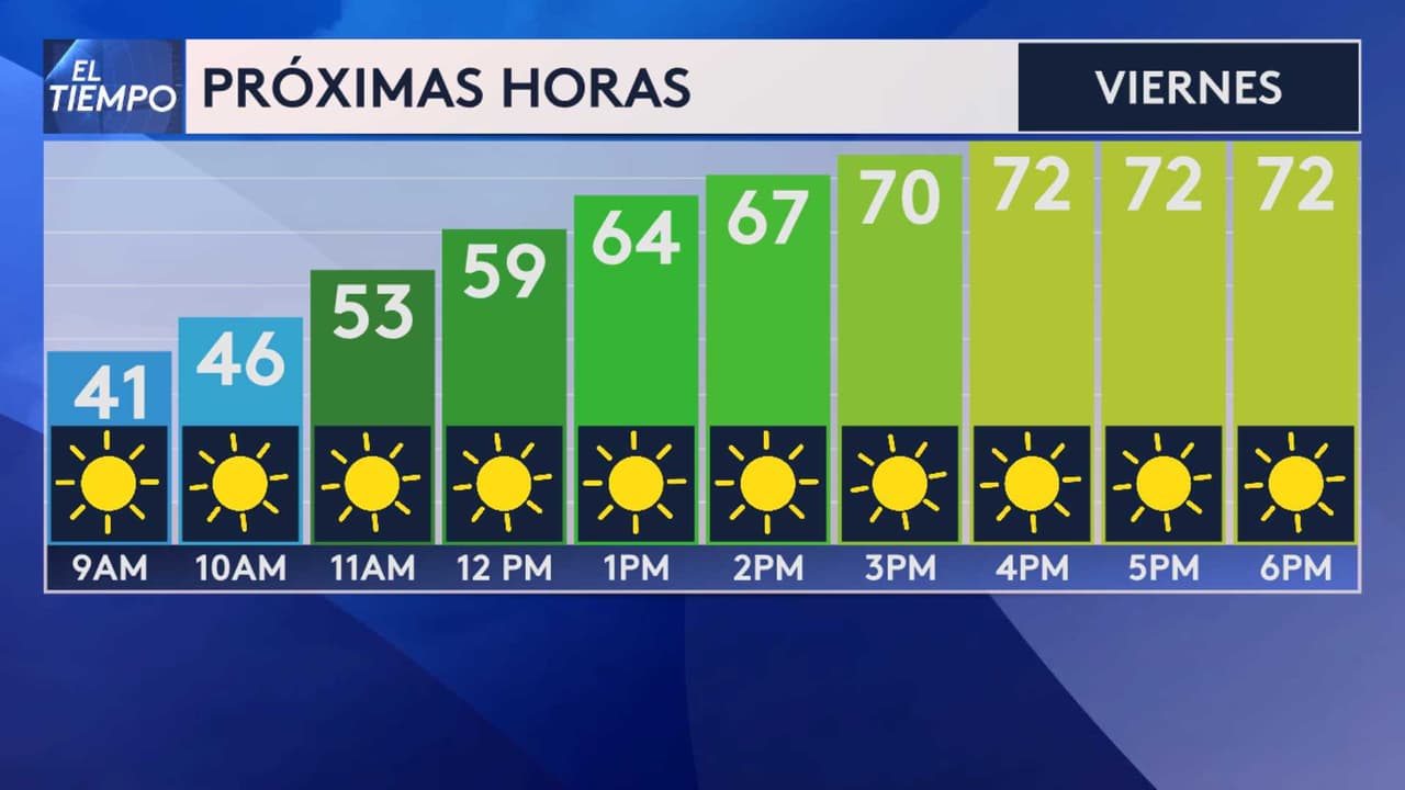 Viernes soleado con máximas de 72 F; por la noche se espera que el termómetro baje hasta los 40 F