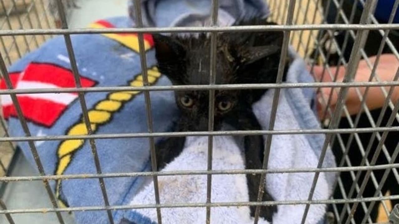 Agentes rescatan a un gatito atrapado en una tubería: lo llaman “Piper”