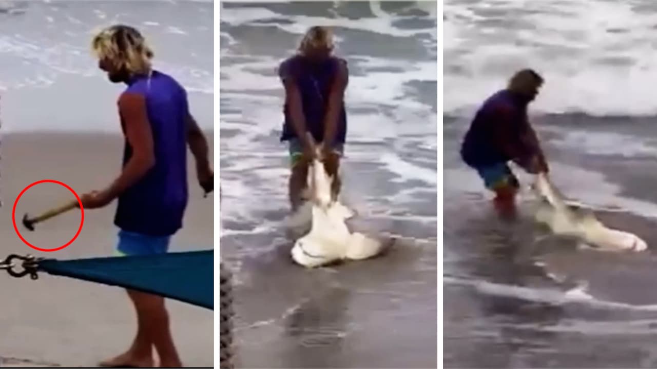 En video quedó grabado cómo un hombre le dio varios martillazos al animal que llegó a la orilla en Bicentennial Beach Park en el condado Brevard.