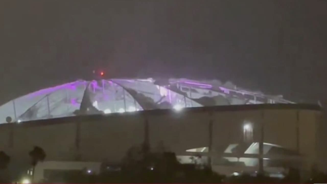 Según se informó, una grúa de construcción colapsó y terminó dañando el techo del Tropicana Field, el estadio donde juega el equipo de los Rays de Tampa Bay. Te mostramos las imágenes del estrago que deja el huracán Milton en esta estructura.