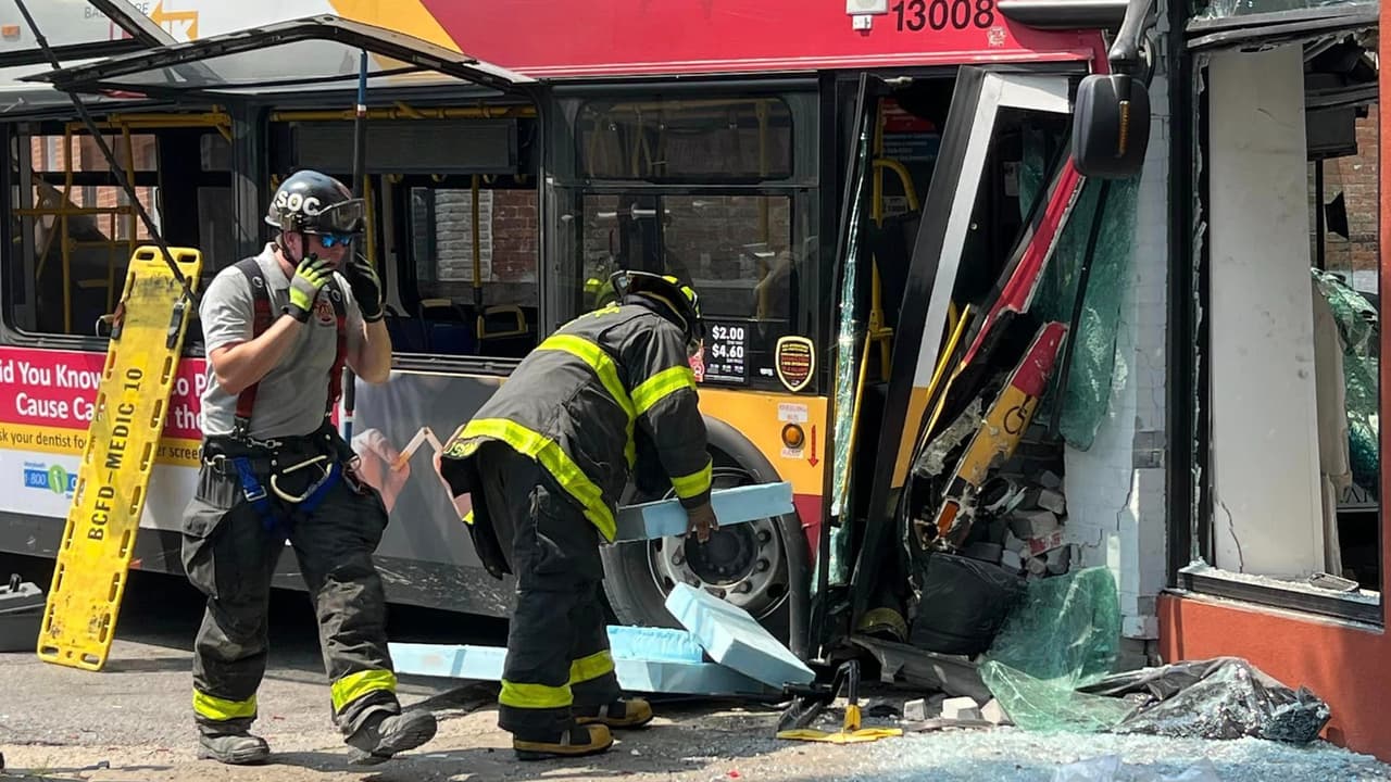16 heridos por choque de autobús contra dos autos y un edificio de apartamentos en Baltimore