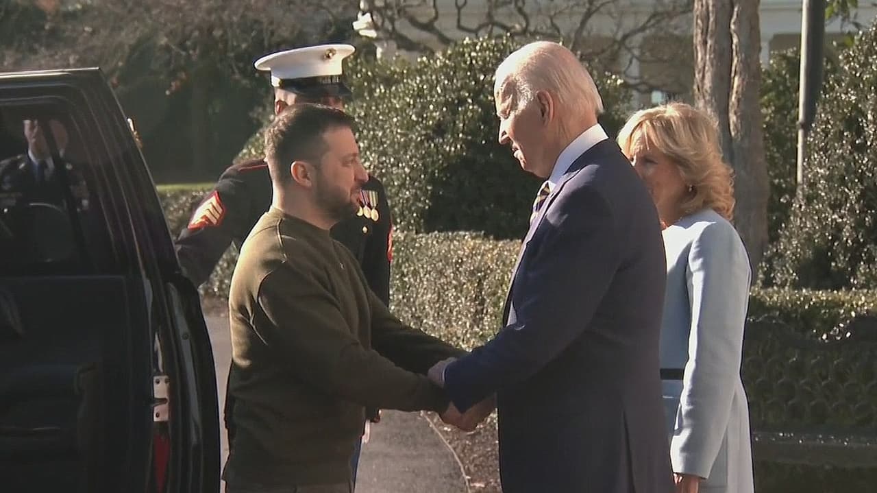 Alrededor de las 2:30 p.m. llegó a la Casa Blanca, donde sostiene un encuentro con el presidente Biden, quien se espera anuncie el envío de casi $ 2 mil millones en asistencia de seguridad a Ucrania. La conferencia de prensa conjunta está pautada a las 4:30 p.m.