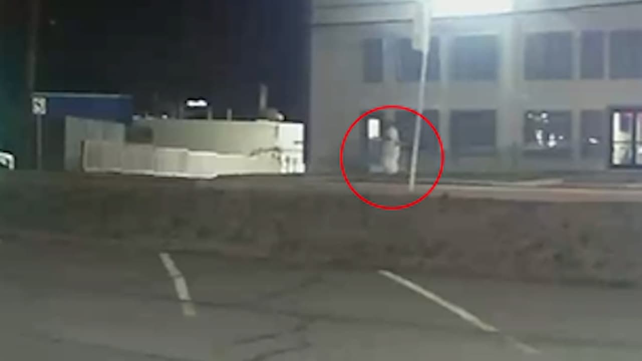 Una cámara de vigilancia cercana captó el momento en que Rickey Lowe, el hombre acusado de robar una ambulancia en Fairfax para escapar del hospital, camina con dificultad alejándose del vehículo, donde lo dejó tras escapar del hospital.