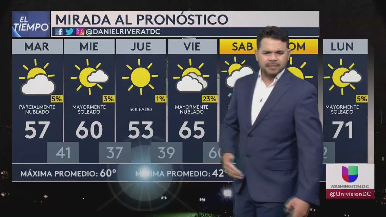 Nuestro meteorólogo Daniel Rivera nos trae un reporte del clima que vamos a tener toda esta semana en el DMV por si quiere salir a hacer deporte o disfrutar algún espacio en familia.