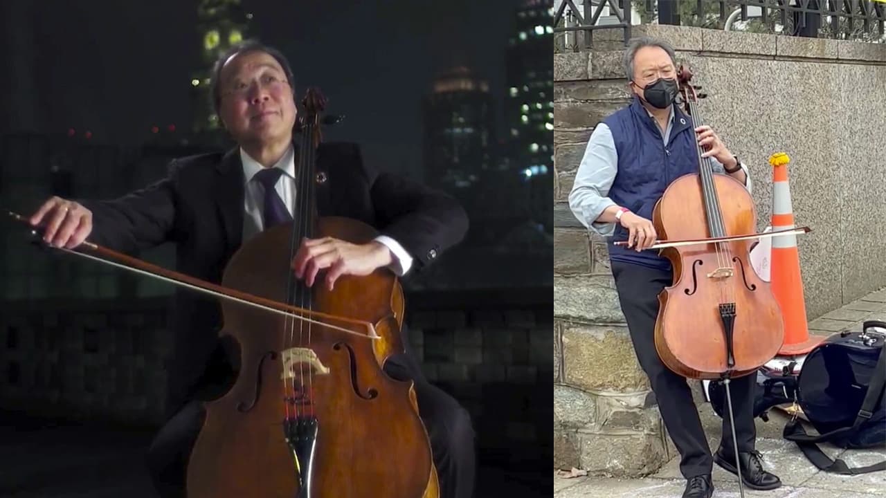 El violonchelista Yo-Yo Ma toca, en forma de protesta, afuera de la embajada rusa