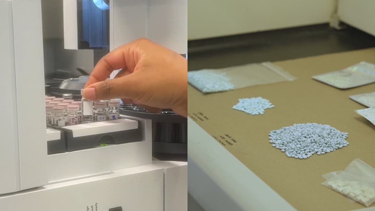 La DEA somete a maquinaria las pastillas incautadas para determinar la cantidad de fentanilo que contienen.