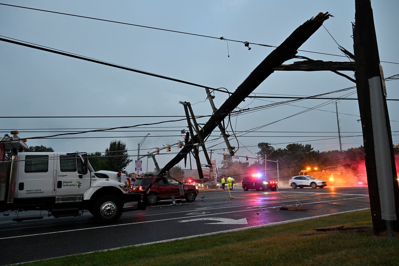 En Westminster, Maryland, poco antes de las 10 de la noche, decenas de vehículos quedaron atrapados en las vialidades por la caída de postes de electricidad.