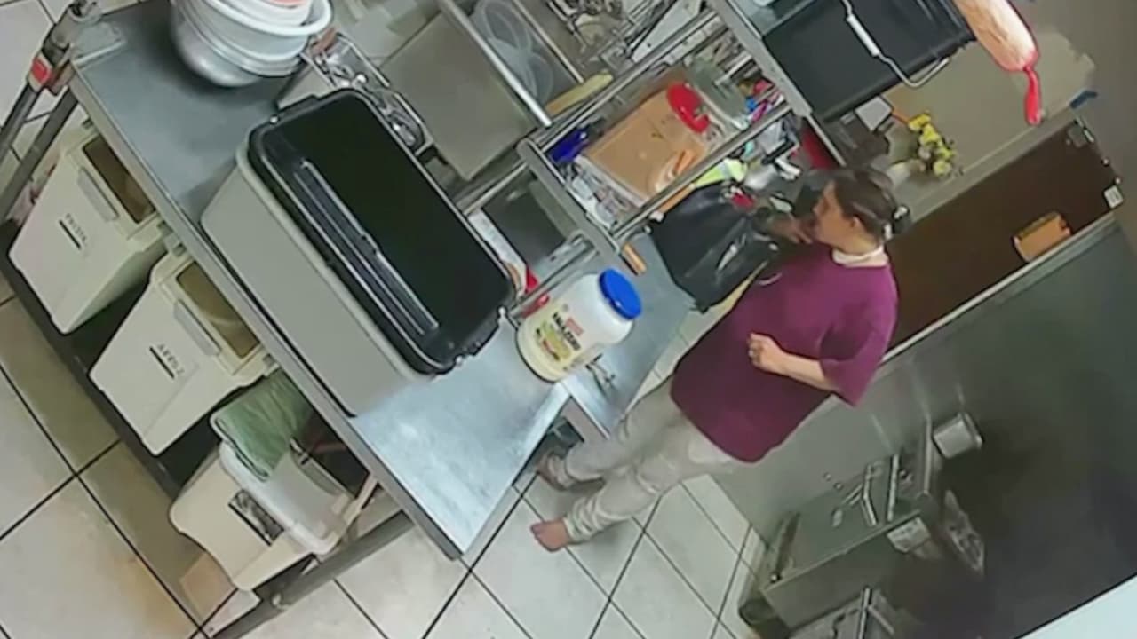 Una cámara de vigilancia captó el momento en que una mujer presuntamente roba un bolso al interior de la cocina de un restaurante. Según los dueños del lugar, horas antes la acusada había entrado al local pidiendo usar el baño. El hecho ha generado preocupación en la comunidad, que pide una mayor acción de las autoridades.