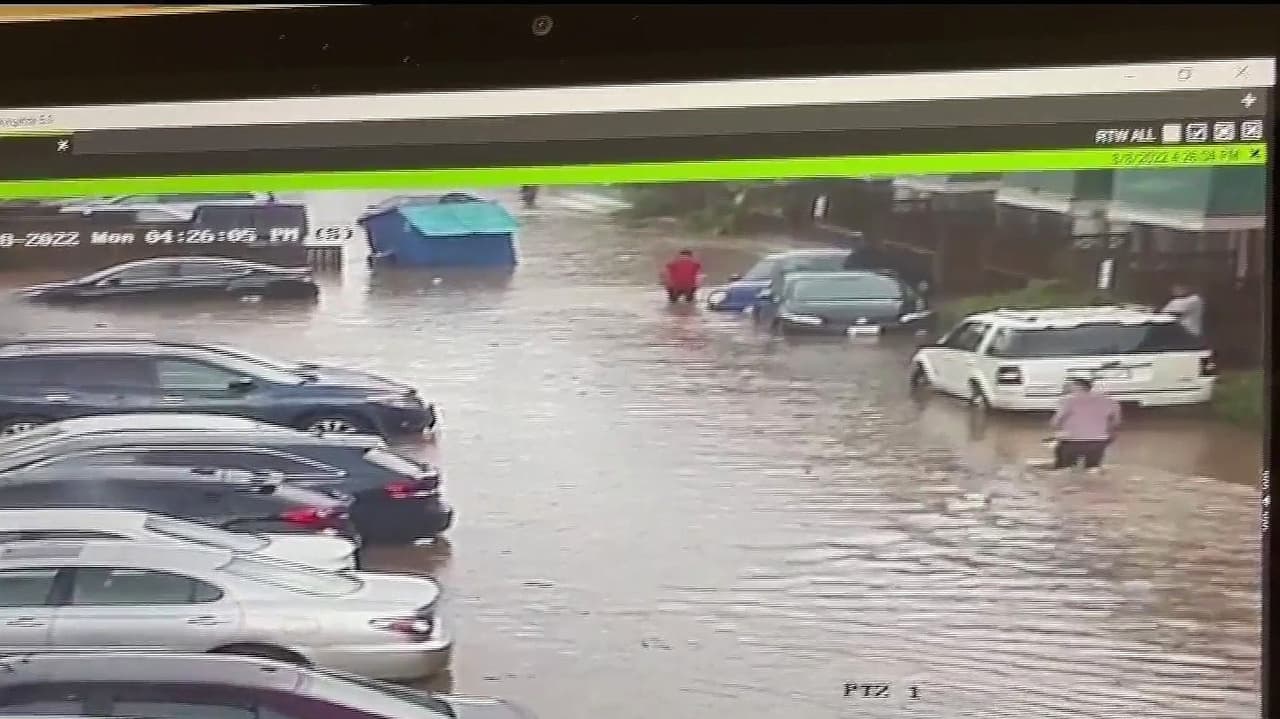 Cámaras de seguridad lograron captar cómo en un lapso de 15 minutos las intensas lluvias inundaron el estacionamiento y parte del primer piso del complejo de apartamentos Riverdale Village. Ante esto, la administración tuvo que brindar asistencia a los propietarios e inquilinos y se está indagando si en la zona hay algún problema de drenaje.