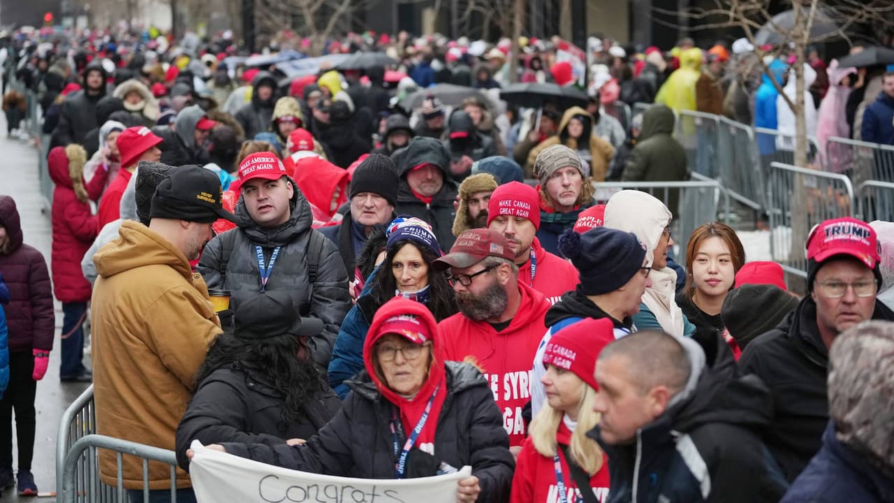 El presidente electo, Donald Trump, realizará este domingo el llamado ‘mitin de la victoria’ en el Capital One Arena. Miles de personas han hecho largas filas desde temprano para tratar de ingresar y se espera que al evento asista el vicepresidente electo, JD Vance, además de otras personalidades como Elon Musk.