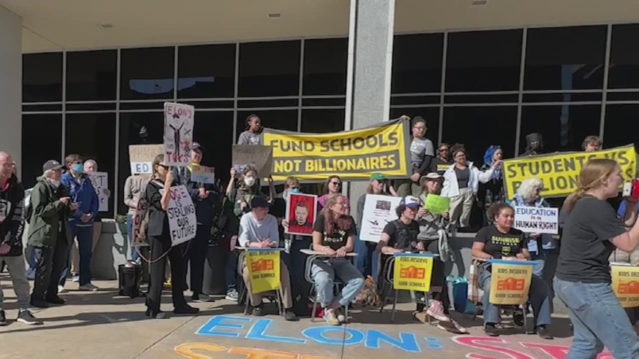 Decenas de maestros y alumnos se reunieron afuera del Departamento de Educación para expresar su rechazo a la orden ejecutiva firmada por Donald Trump, la cual ordena el cierre de la agencia y le entrega la autonomía a los estados. Los manifestantes aseguran que millones de estudiantes se verán afectados si se desmantela el departamento.