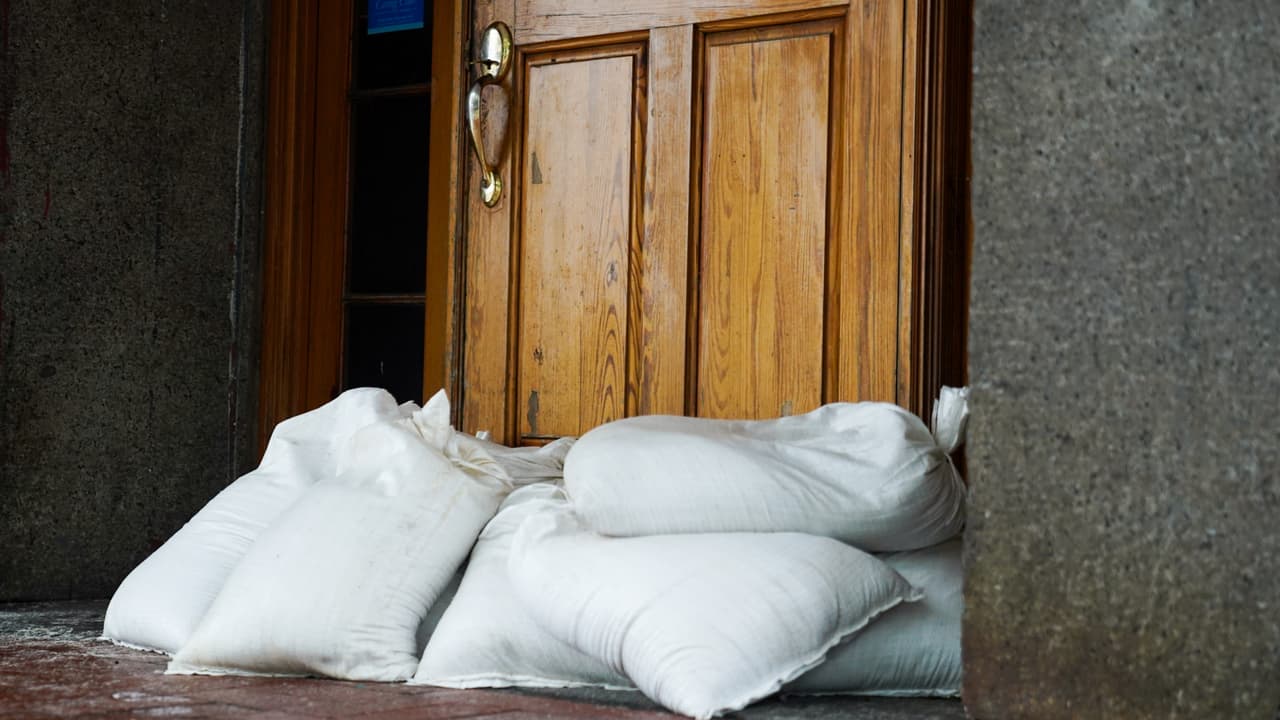 Sacos de arena protegen puertas y ventanas en Alexandria ante llegada de remanentes de Debby