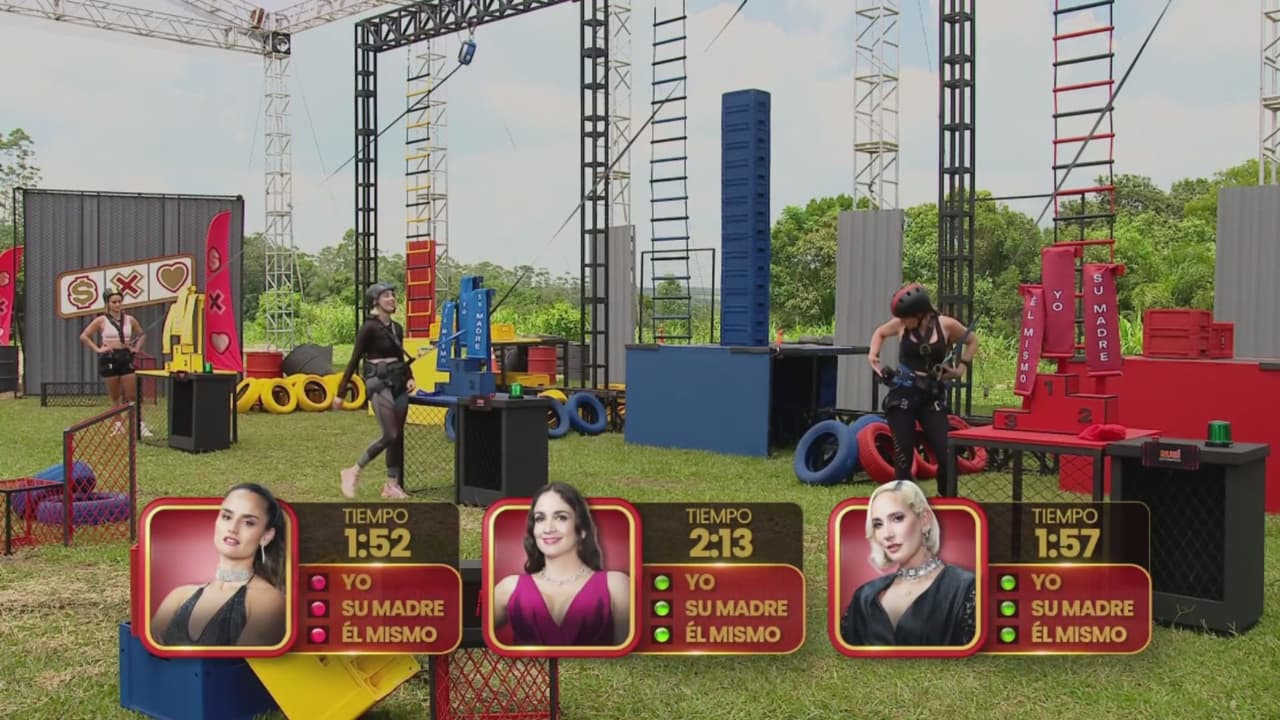El primer desafío que enfrentaron las mujeres fue ‘El Top 3 de su vida’, en el subieron por una escalera y apilaron cajas hasta formar una torre estable. En la cima, tomaron una tarjeta que estaba junto a una bandera y descendieron con cuidado, ya que abajo las esperaba una mesa donde debían ordenar prioridades.
