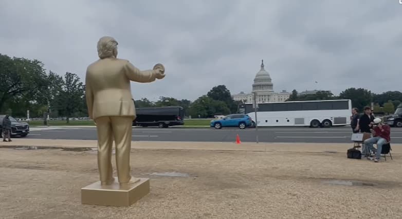 WASHINGTON, D.C.- Una estatua dorada de Donald Trump sosteniendo una moneda de Bitcoin apareció el miércoles 17 de septiembre de 2025 en el National Mall de Washington D.C., frente al Capitolio de Estados Unidos. La escultura, de 3.6 metros de altura, fue instalada por un colectivo vinculado a la plataforma Pump.fun, conocida por facilitar la creación y comercialización de criptomonedas de tipo "memecoin".