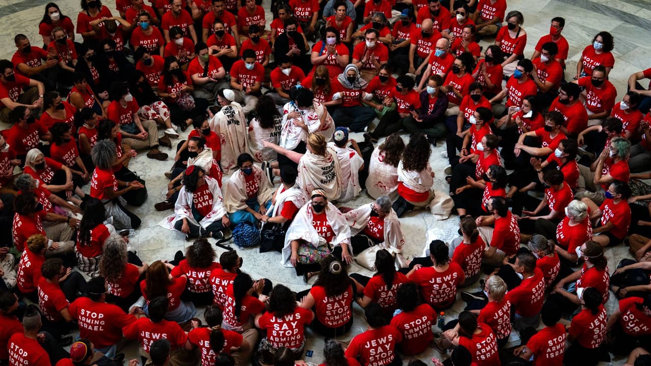 Ya el lunes 22 de julio se reunieron algunos manifestantes pro palestinos frente al Hotel Watergate en DC. Este martes, otra movilización, incluso con personas arrestadas, ha tenido lugar en Capitol Hill, en manos de Jewish Voice For Peace.