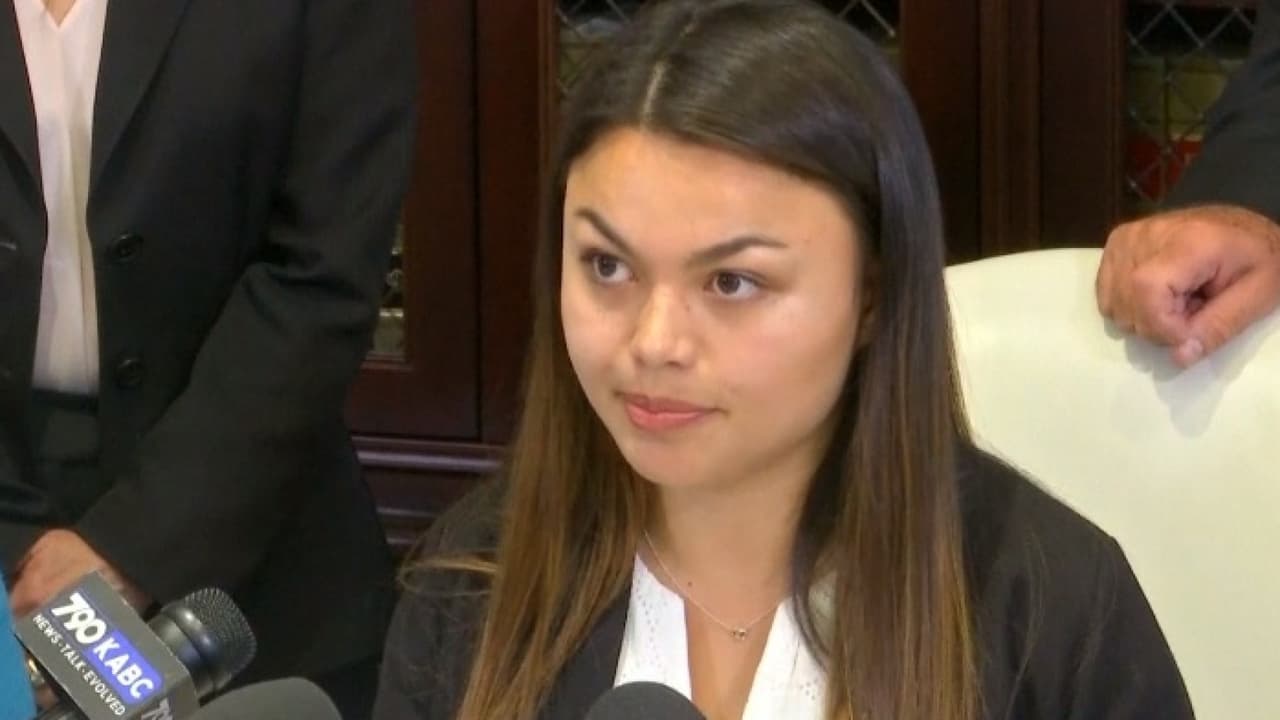 "Como estaba traumatizada, mis recuerdos de la examinación son vagos, más allá del hecho de que sí recuerdo que el doctor Tyndall me tuvo en la sala de exámenes por un periodo muy largo de tiempo", explicó la egresada de USC en una rueda de prensa junto a su abogada.