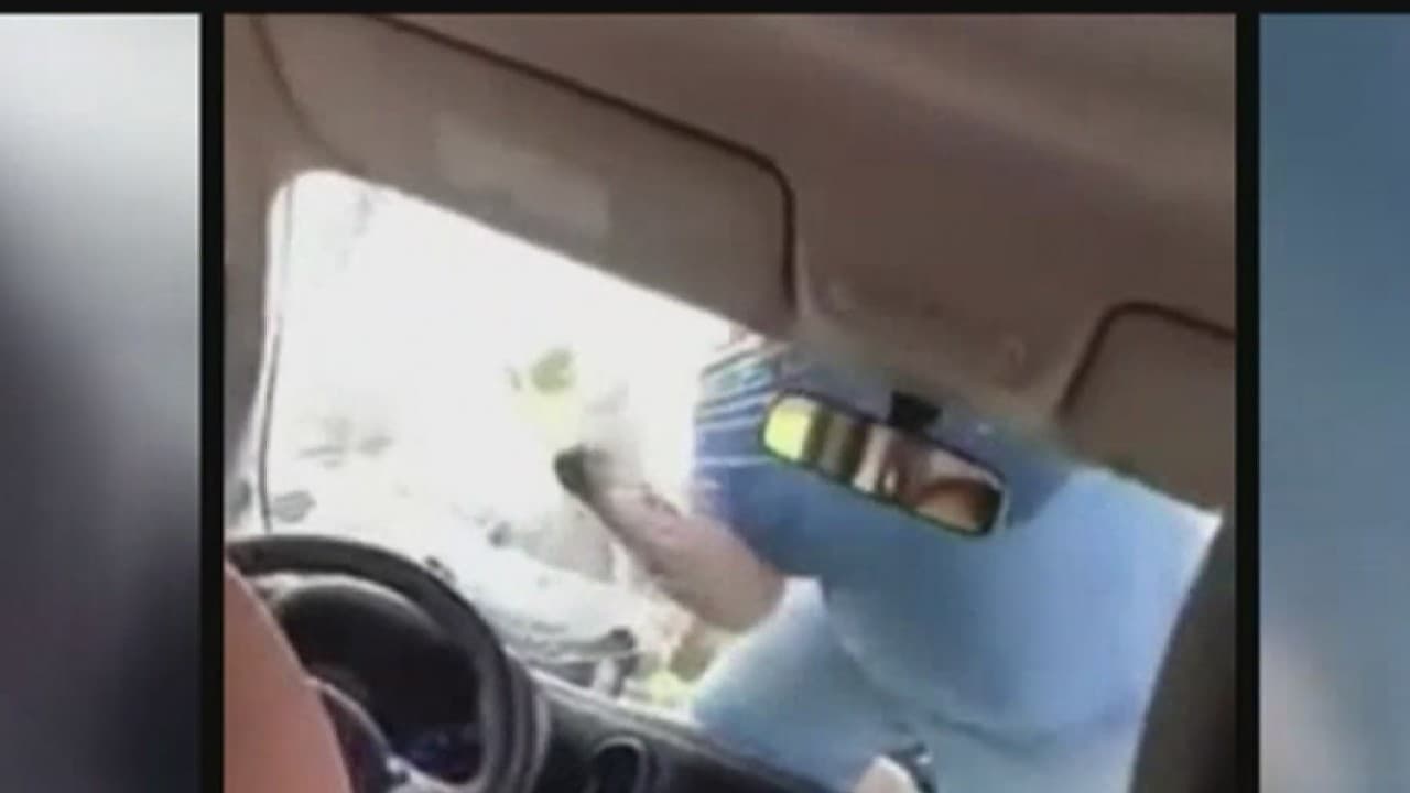El sujeto se subió a la parte delantera del vehículo y comenzó a golpear violentamente el parabrisas, ante la mirada de la conductora y los menores que iban con ella.