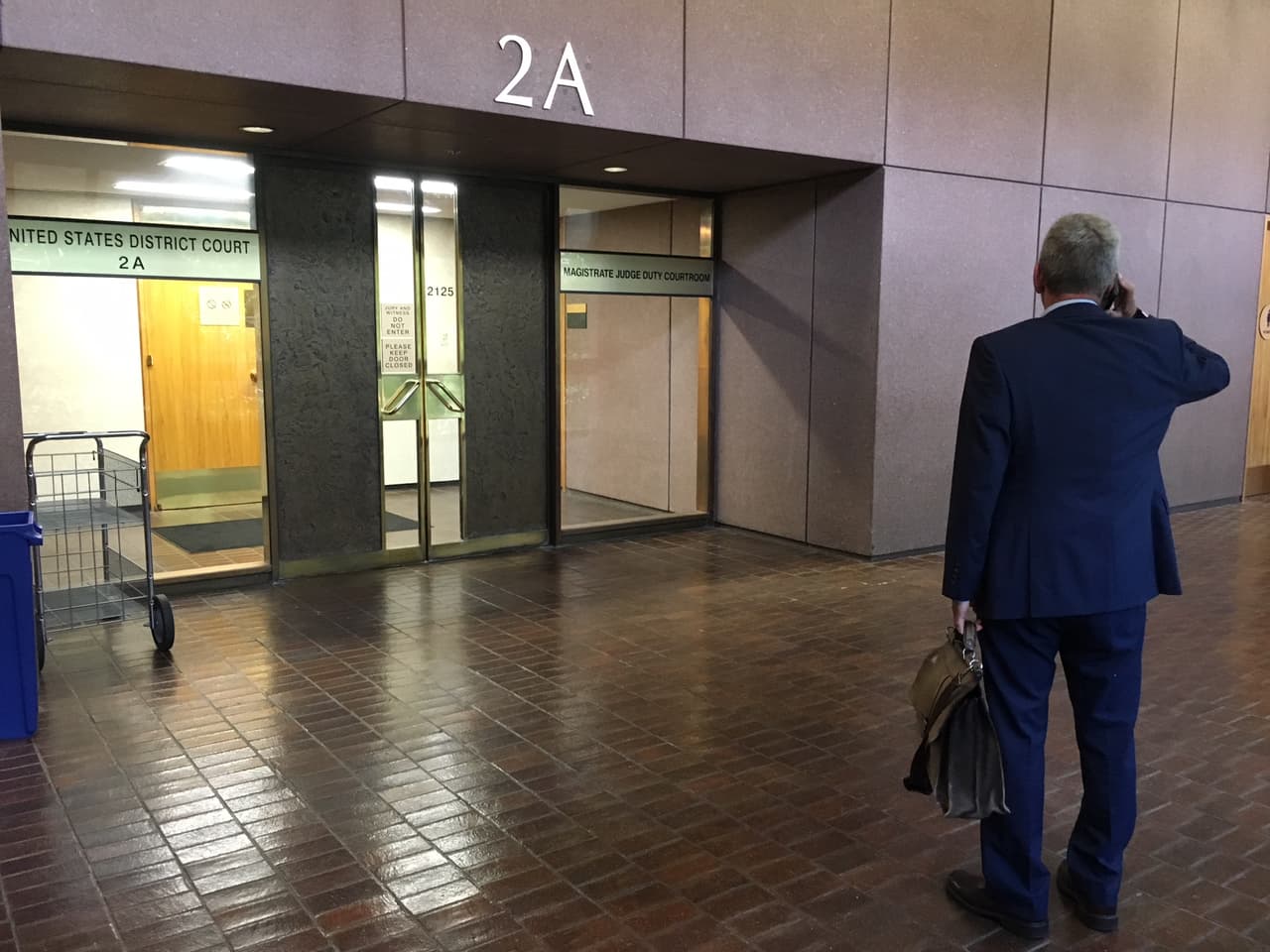 El juez Skomal entra a la sala 2A y revisa unos documentos sobre su escritorio. Hay tantos defensores federales, secretarios y traductores que apenas si alcanzan las sillas. Seis agentes del US Marshals que visten pantalón beige y camisa negra esperan a los acusados: tres campesinos de India que piden refugio a EEUU. Una intérprete les tradujo la audiencia.