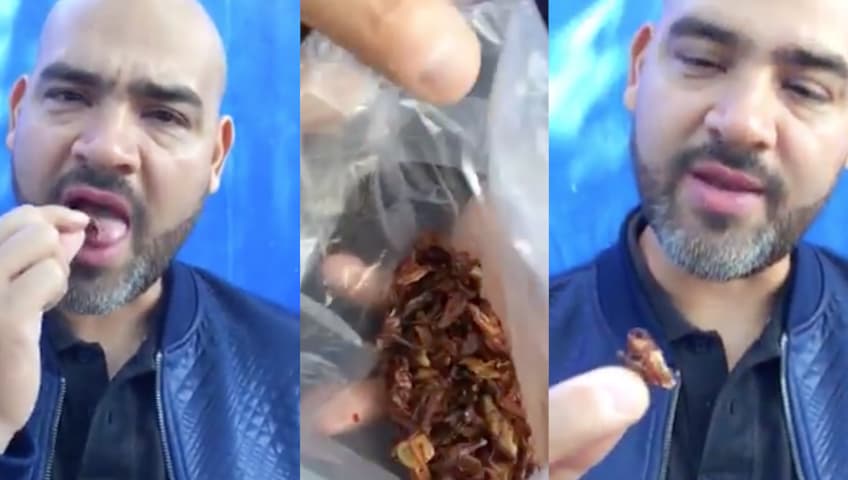El locutor recomienda un nuevo alimento que de ahora en adelante revolucionará el mercado gracias a un particular insecto.