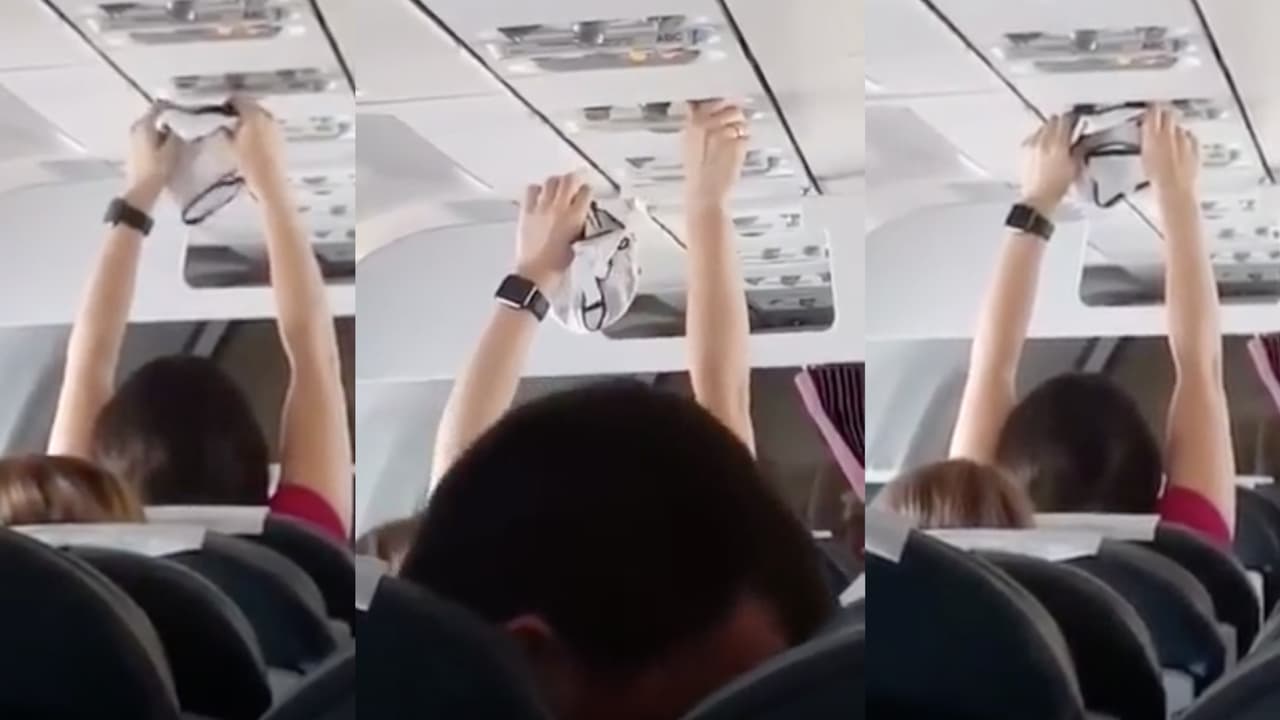 La pasajera fue vista secando su prenda íntima bajo los conductos de aire durante un vuelo de Turquía a Moscú.