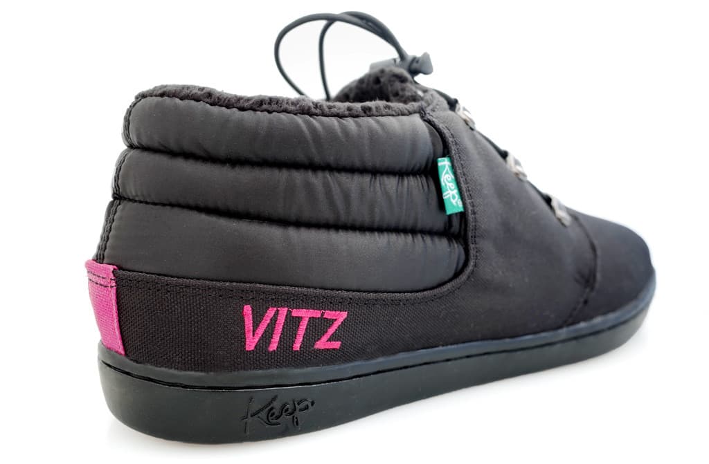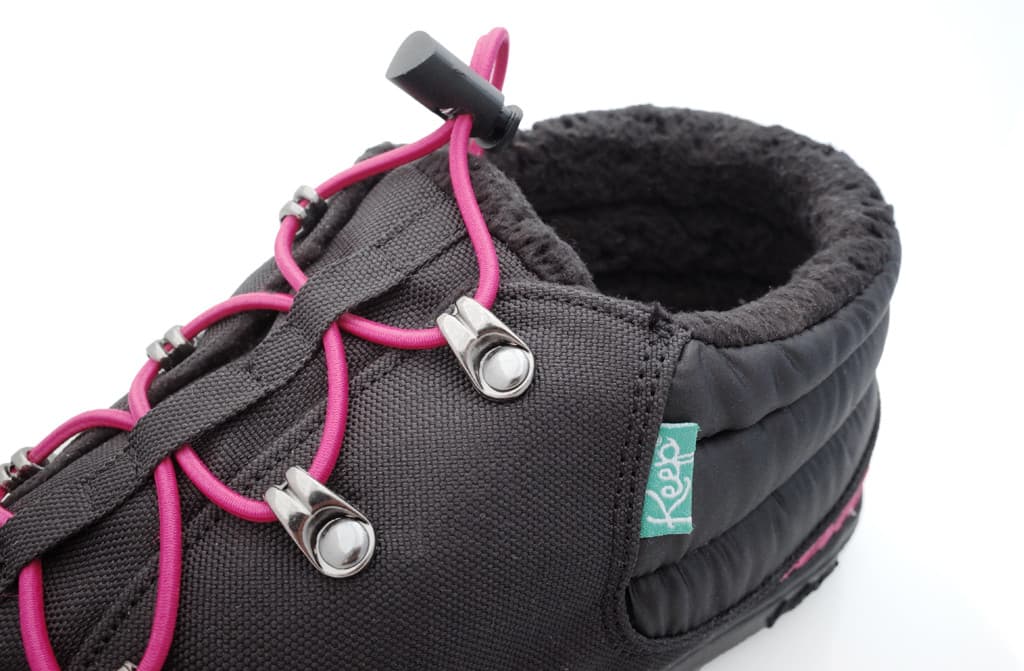 As described by the website: "Designed by Beastie Boy Adam Horovitz, the Keep x Ad-Rock Ramos is a new take on our classic mid top. Inspired to make a sneaker that would keep him warm during the winter months, the Keep x Ad-Rock Ramos features a water-resistant, nylon cordura body and is lined with synthetic shearling. The ankle features a channel quilted, silicon coated nylon accent, stuffed with synthetic down. The D-ring and bungee lace structure makes for easy slipping on and off, and both black and magenta laces are included. To finish, each pair features embroidery of Adam's name, split between left and the right shoes. Net proceeds of the shoe will benefit Planned Parenthood. As always, all of our shoes are cruelty-free and consciously produced in factories audited by international, third parties who monitor ethical working conditions."