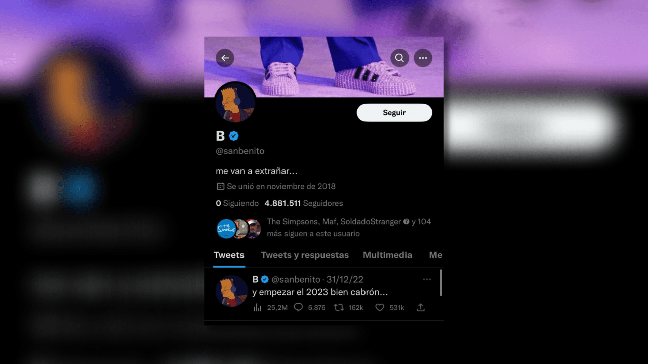 En Twitter, aunque no la puso privada, sí cambió la imagen de perfil que tenía antes, en la que aparecía él de pequeño, por una en la que está Bart Simpson escuchando música, un mensaje que dice “me van a extrañar” y una B.